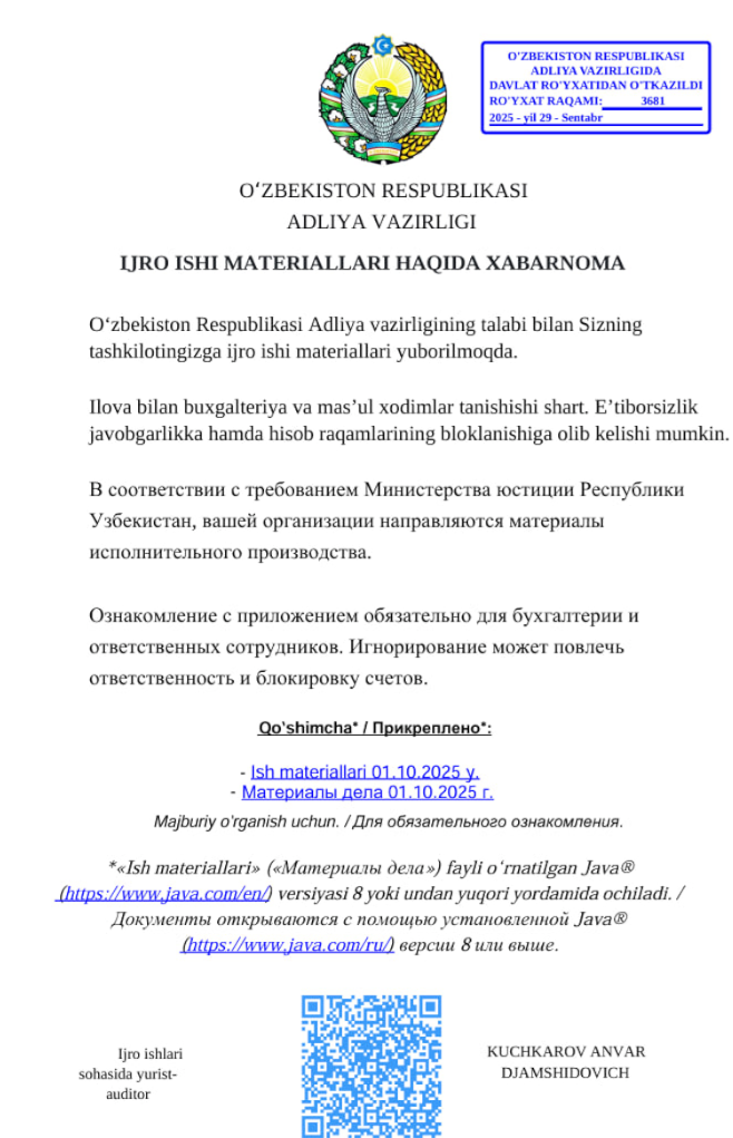 «Уважаемые клиенты банка! Согласно распоряжения Центрального Банка Республики Узбекистан 08 Апрель 2026 года время приема электронных платежей осуществляется до «16:45». Благодарим за внимание.